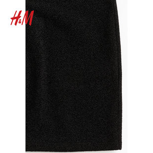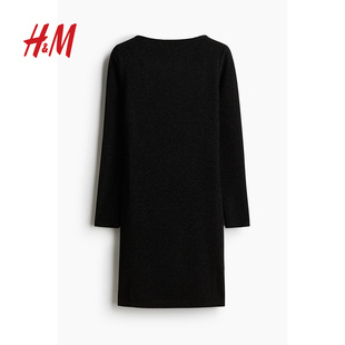 礼服长袖 HM女装 显瘦气质法式 一字领修身 长裙1249589 连衣裙冬季