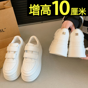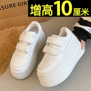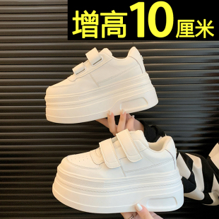 加绒魔术贴内增高鞋 厚底小白鞋 冬季 春春休闲松糕板鞋 子 女2026新款
