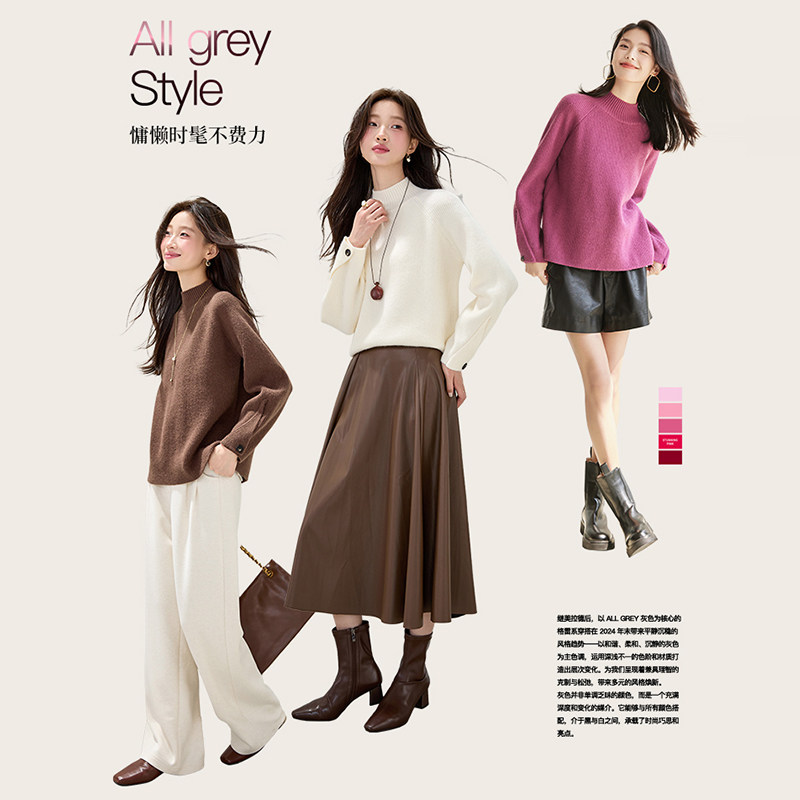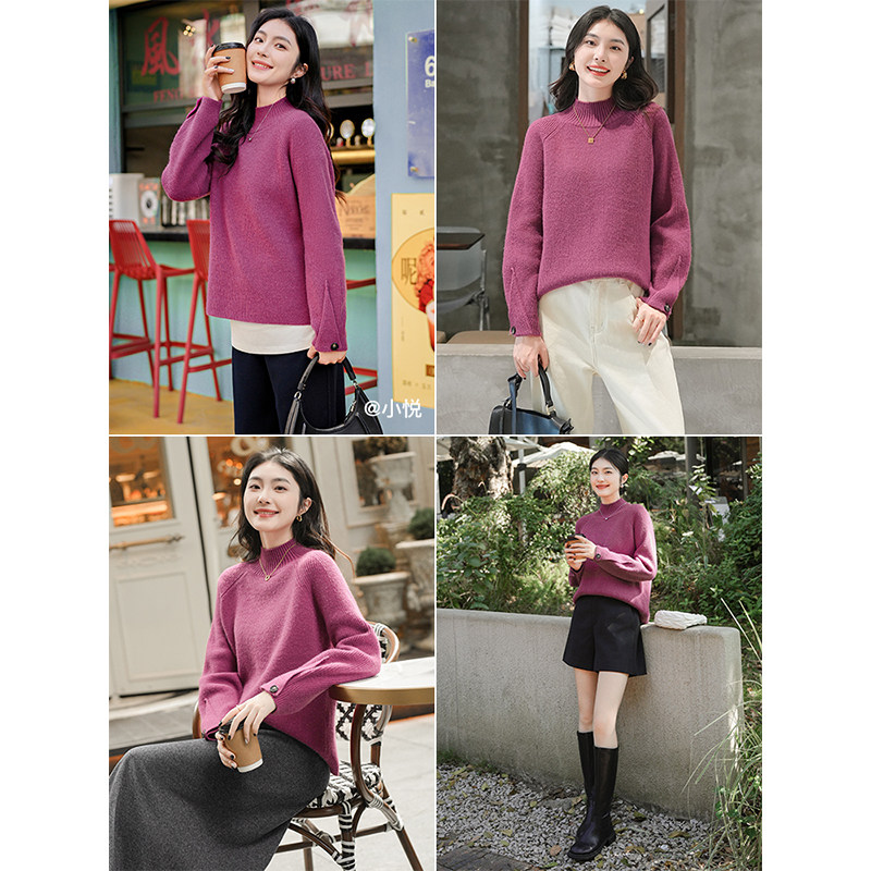 OSA欧莎树莓粉半高领毛衣2025年新款 上衣 女多巴胺软糯显白秋冬季