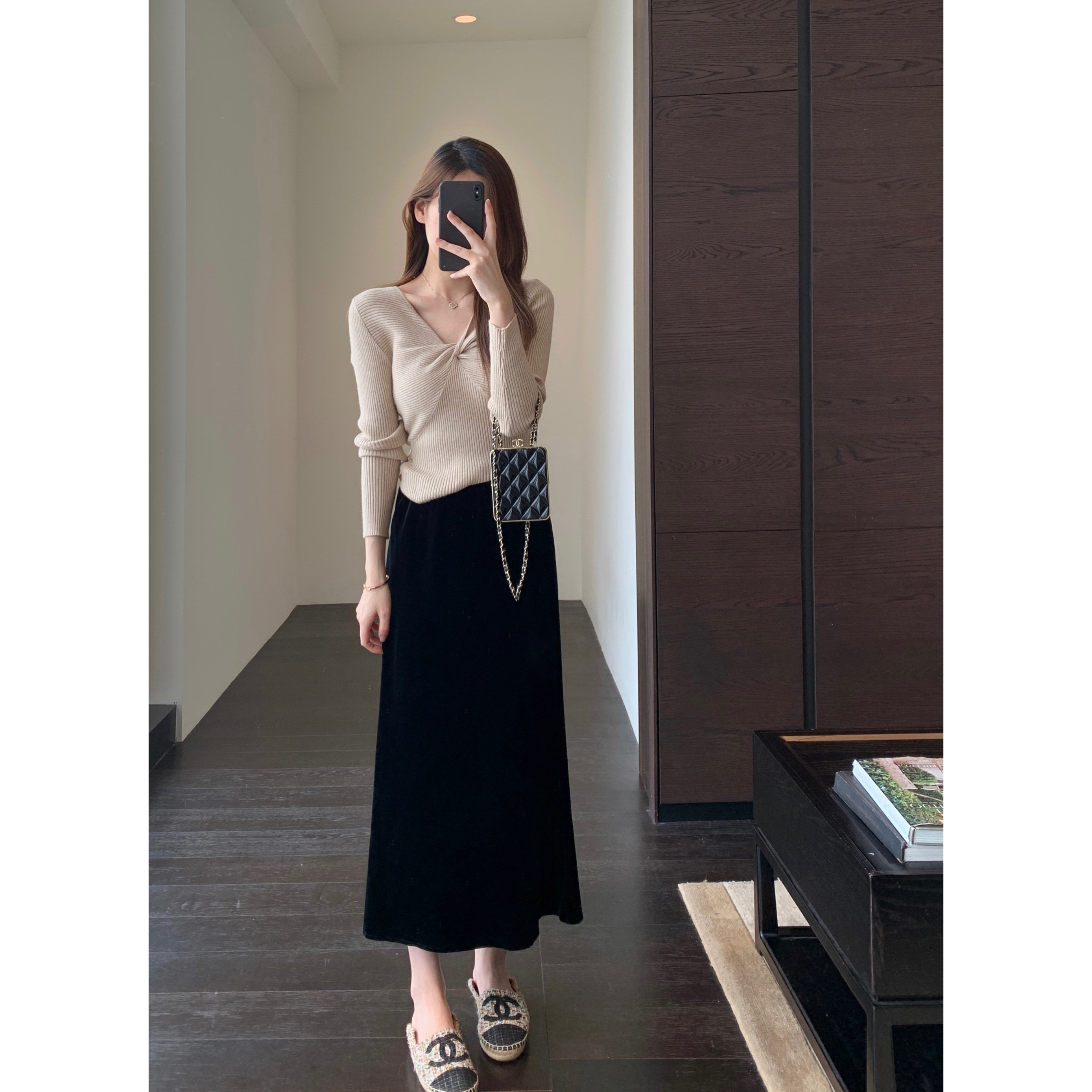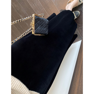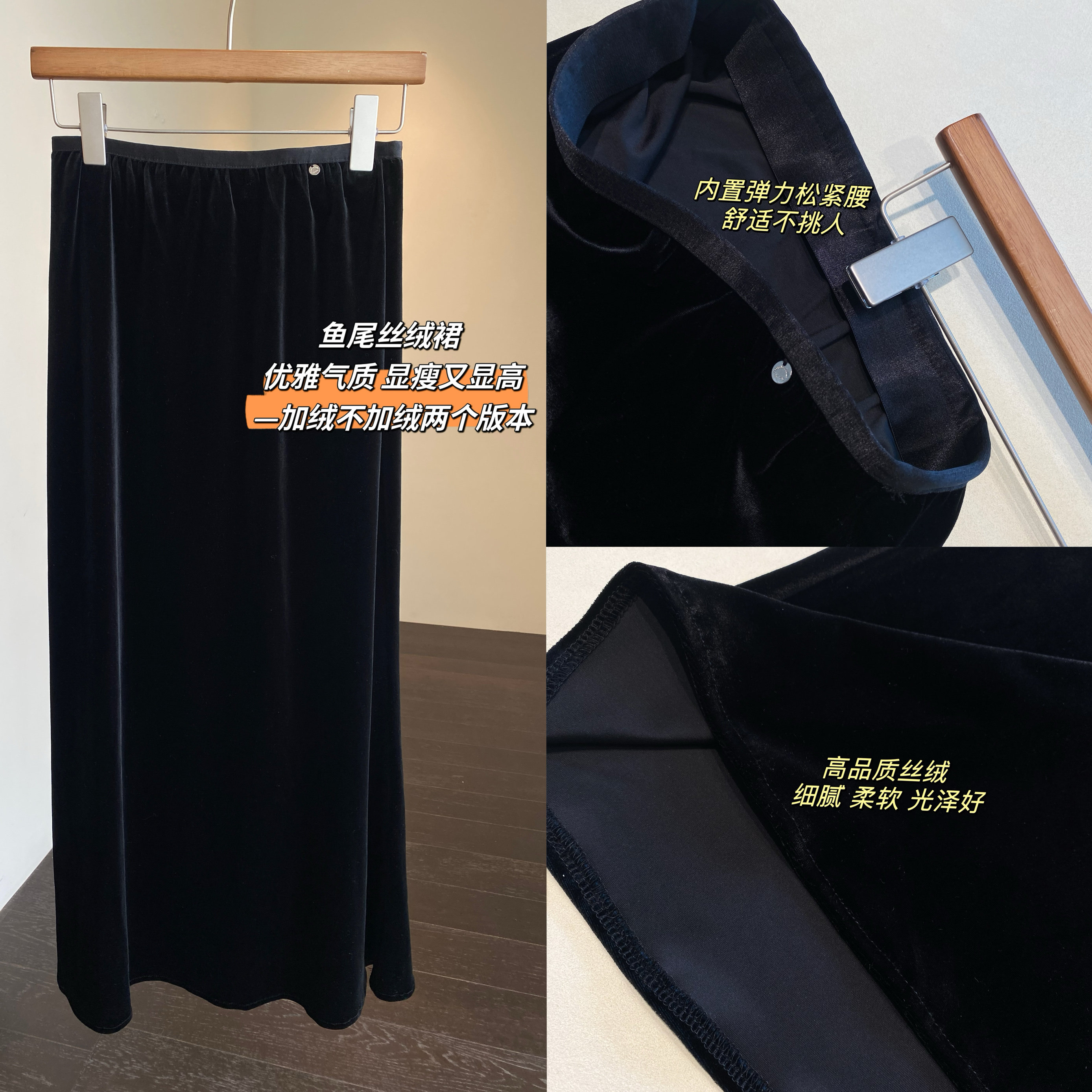 气质鱼尾裙高腰显瘦小黑裙垂感丝绒半身裙女新 优雅浪漫 AMR