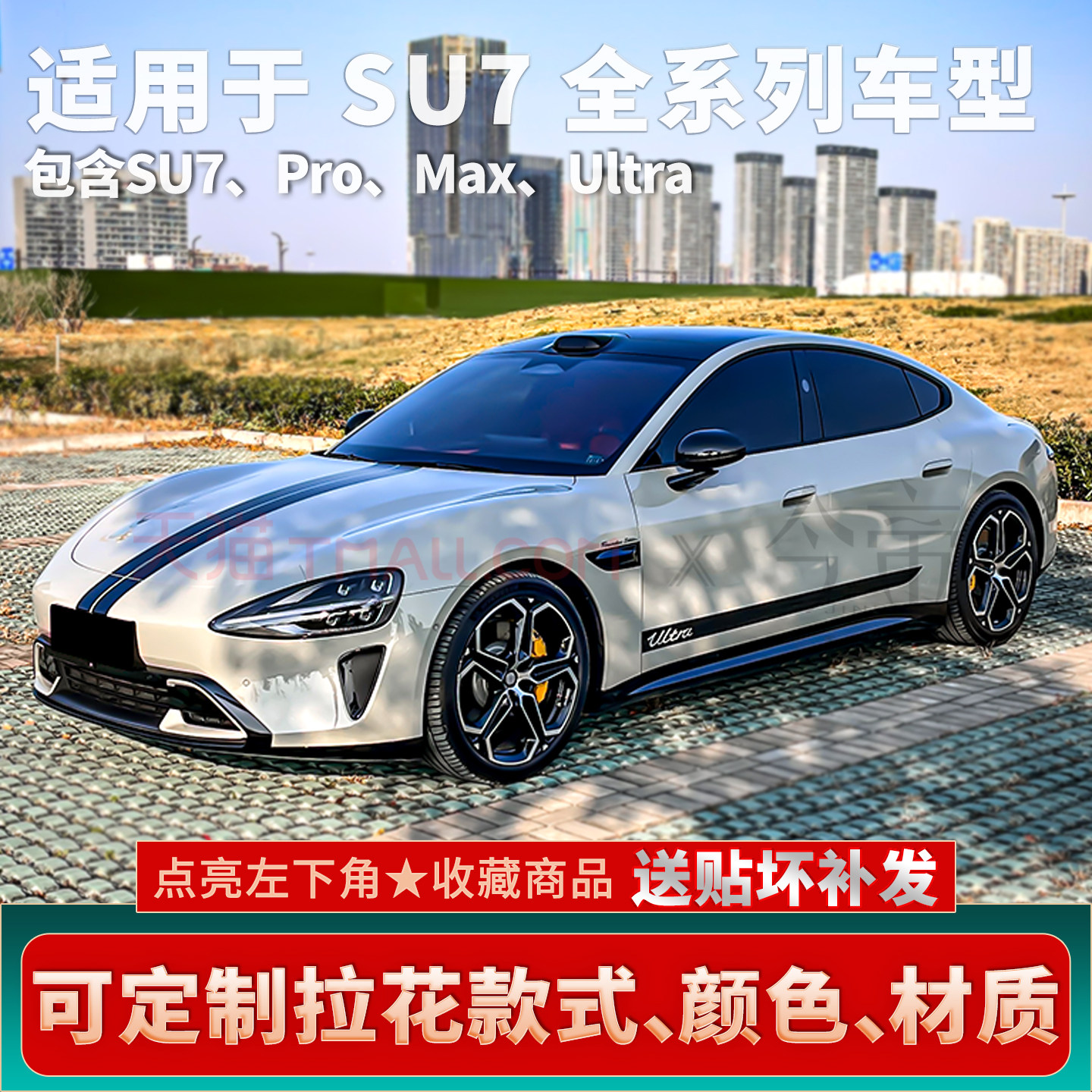 适用于新老款 SU7拉花银灰机盖车门边黑色车身贴纸黄色ultra车贴金