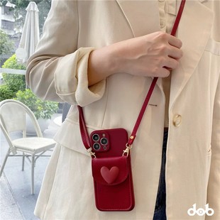 酒红爱心零钱卡包适用iPhone16手机壳15promax硅胶套苹果13全包防摔12 8plus斜挎挂绳xsmax女XR背带 14卡通67