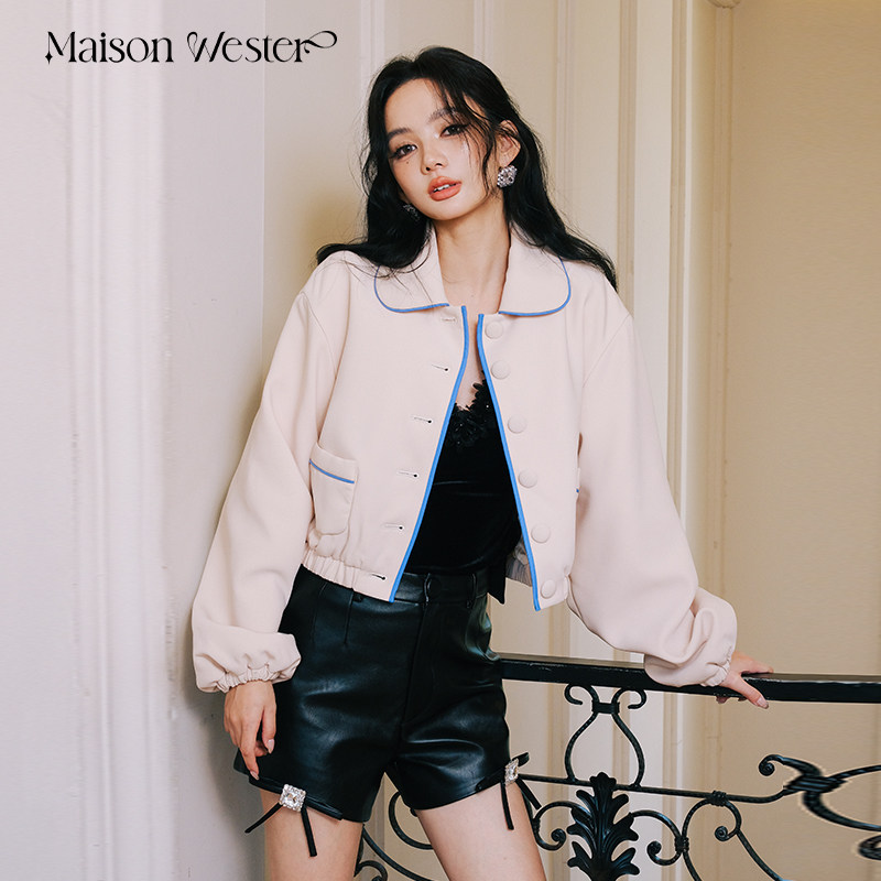 型撞色短款 流行女士通勤百搭休闲版 外套上衣 Wester冬季 Maison