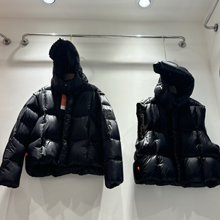 可拆卸两穿黑金亮面短款 羽绒服女冬2025加厚面包服白鸭绒马甲外套