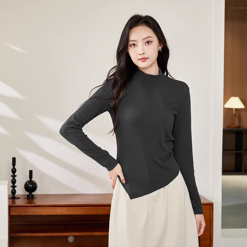 Smen诗萌百搭针织打底衫 显瘦上衣女 女2025内搭叠穿不规则修身