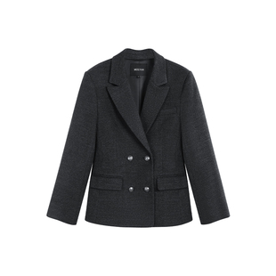 羽绒服内胆黑色西装 正肩加厚羽绒呢子大衣 毛呢外套女2025秋冬新款