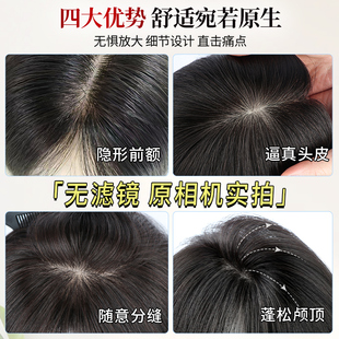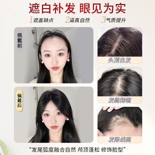 假发女片头顶真发遮白发蓬松高颅顶自然轻薄增发量八字刘海假发片