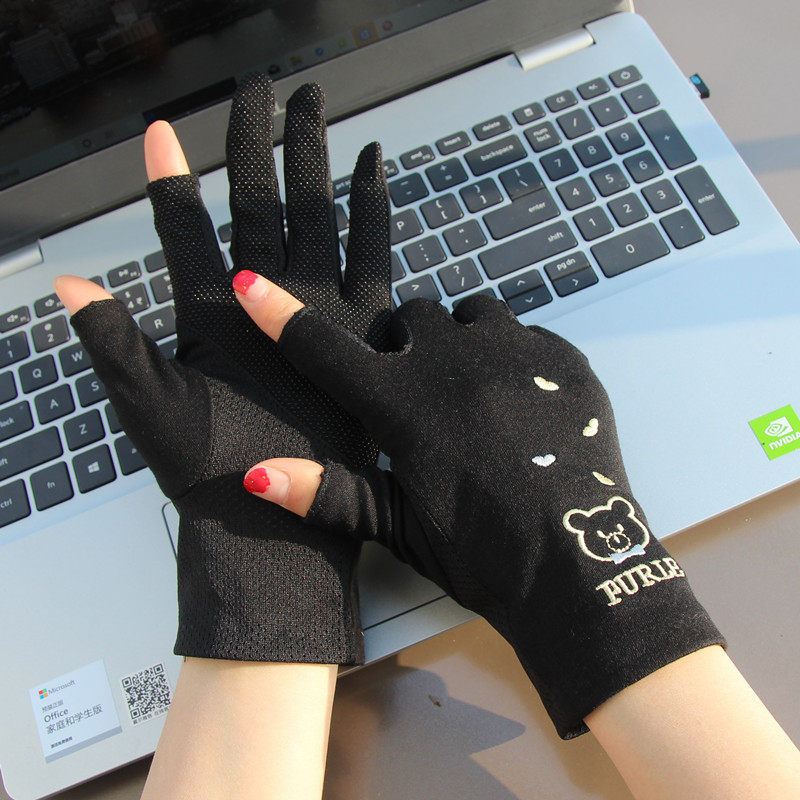 保暖加绒加厚骑行手套女冬季 学生骑车可爱毛绒触屏防风连指防水