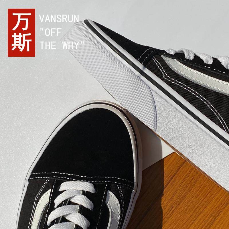 校园风W系列翻毛皮帆布拼接男女国潮滑板鞋 顽刻官方经典 黑白春季