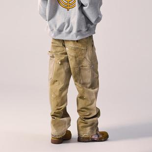 子宽松直筒阔腿休闲长裤 Remedy 裤 复古做旧工装 男女 泼墨水洗美式
