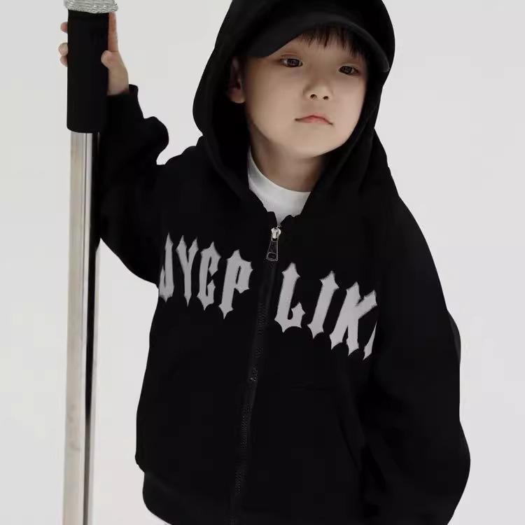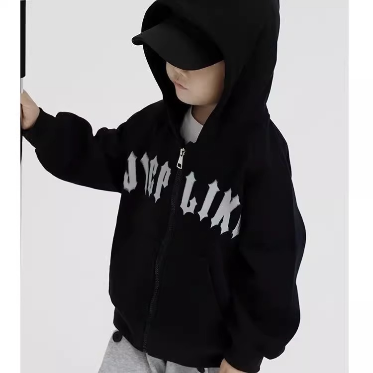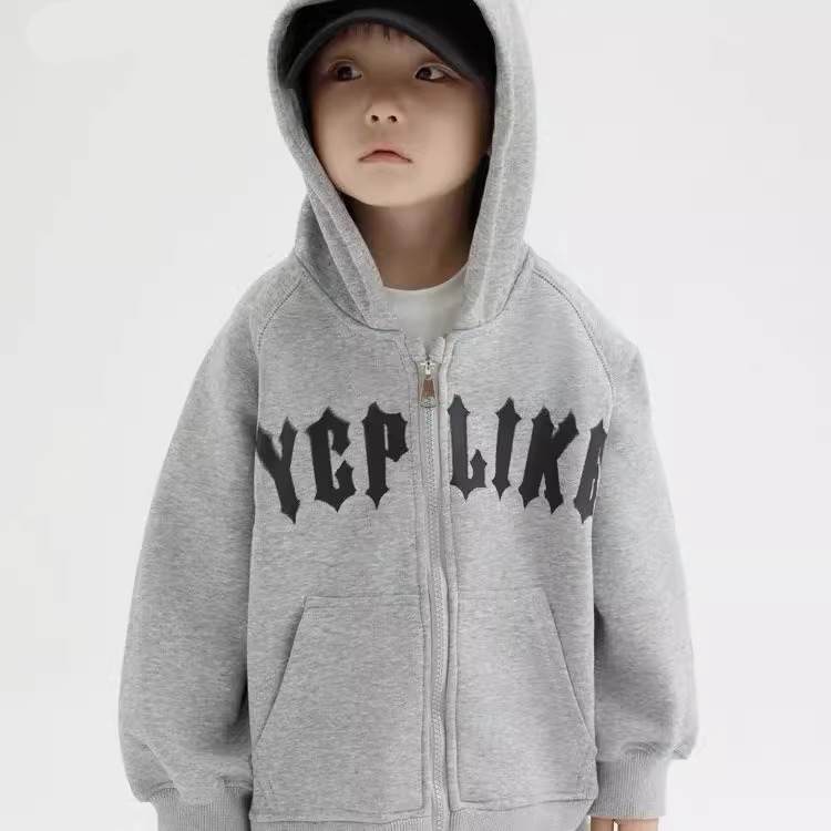 儿童中大童拉链连帽开衫 卫衣男女童秋冬加绒洋气宽松百搭上衣外套