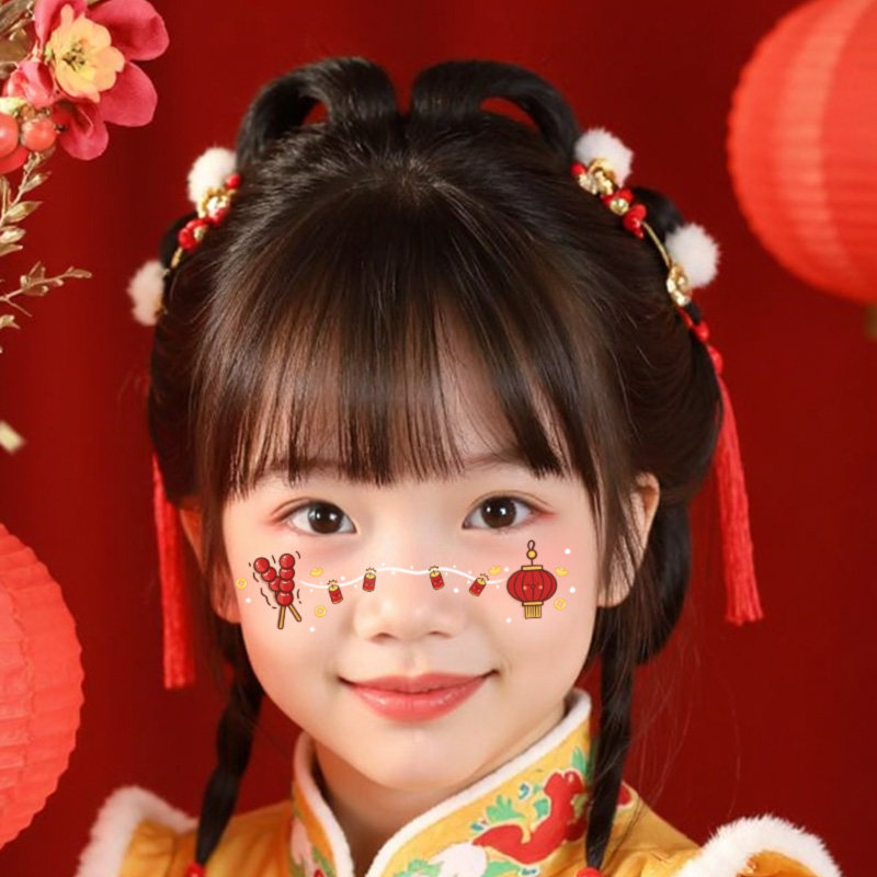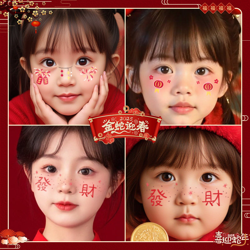 2026元 旦儿童可爱卡通脸贴防水持久新年红包喜庆男女妆容纹身贴纸