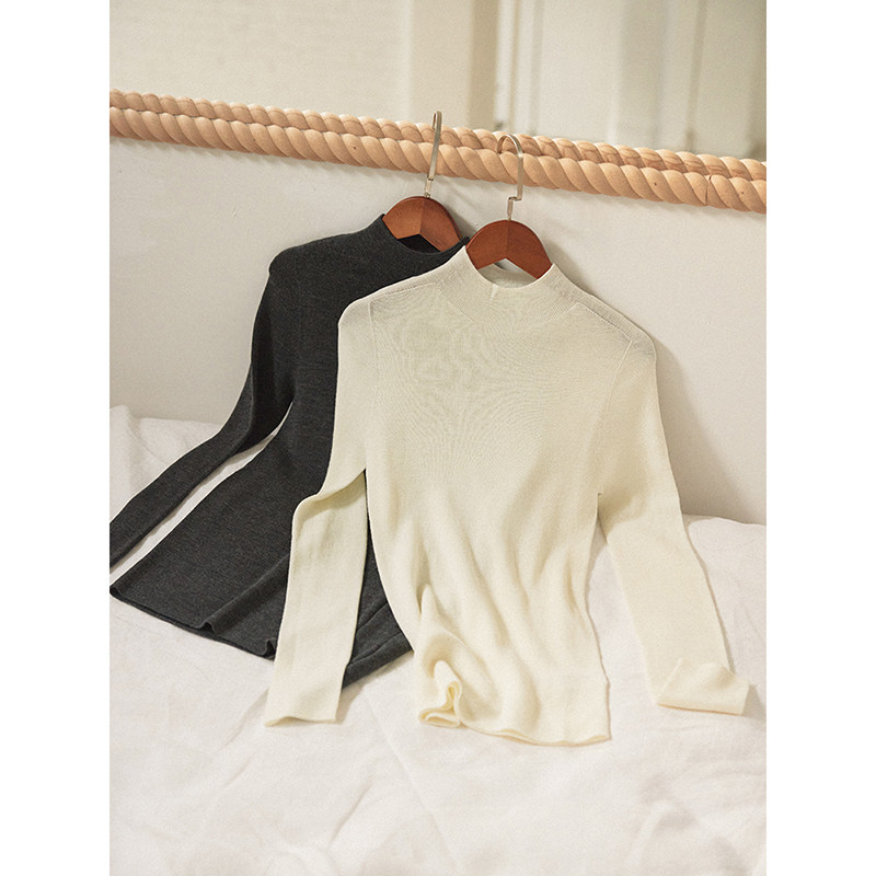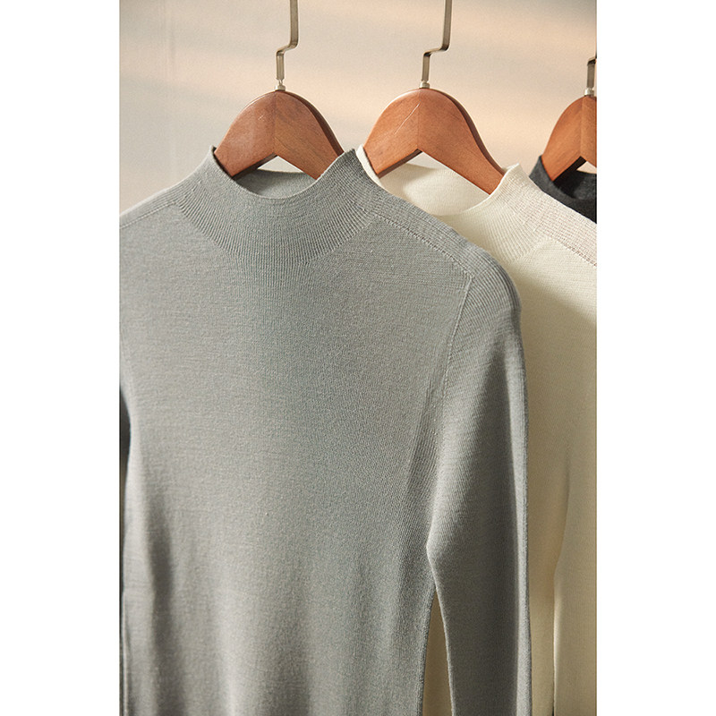 半高堆堆领修身 高支精纺耐起球无缝羊毛针织衫 毛衣 到手199元