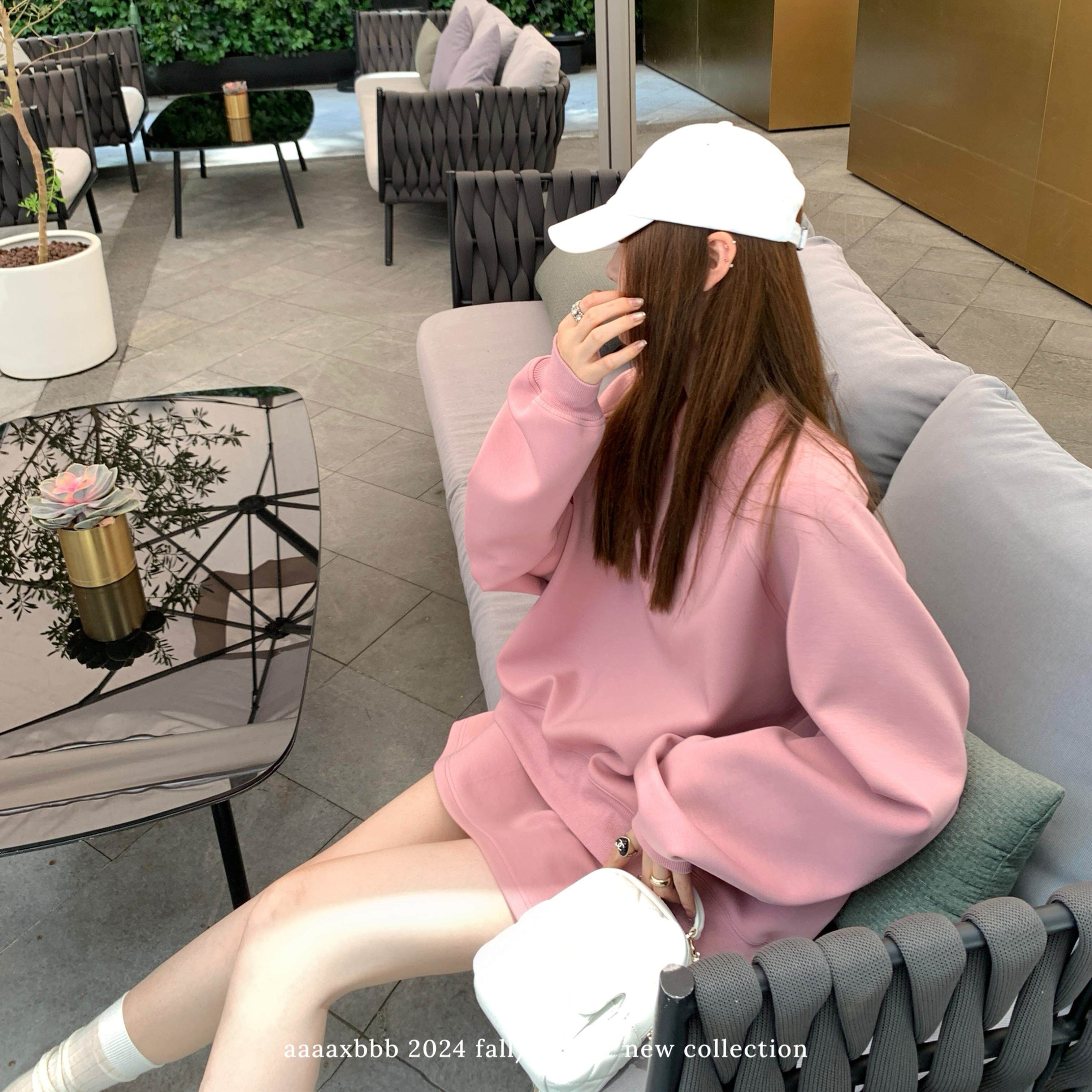 天丝圆领上衣长袖 春秋卫衣套装 松紧腰半身裙女 莓果朗姆 aaaaxbbb