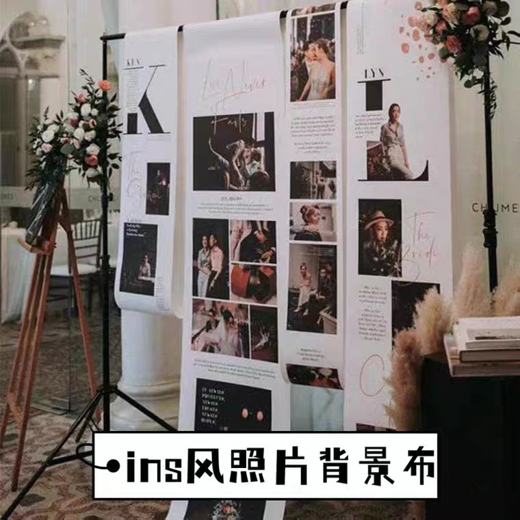 韩系婚礼照片墙写真迎宾大海报定制舞台婚庆网红结婚海报背景布