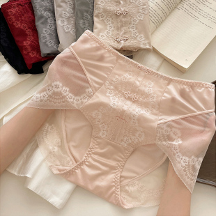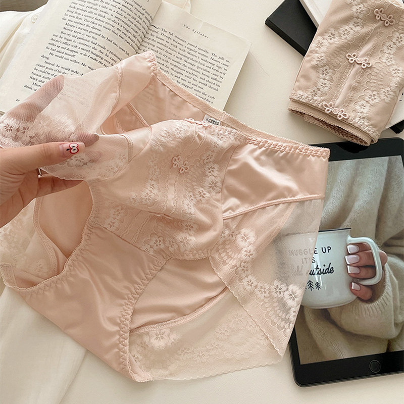 秋 安可拉红收腹提臀包臀无痕三角裤 法式 轻奢缎面裸色蕾丝女士内裤