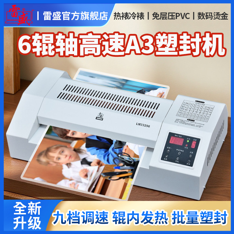雷盛高速A3塑封机LM 33298大型商用图文广告A4过塑机工业照片办公文件覆膜机数显调速重型过胶机8辊轴压膜机