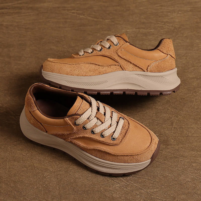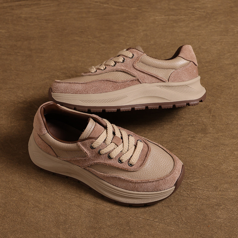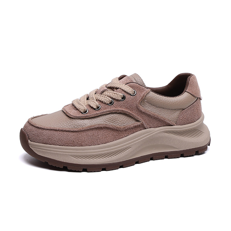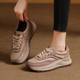 皮面休闲鞋 防滑软底运动女鞋 女厚底真皮老爹鞋 头层牛皮复古阿甘鞋