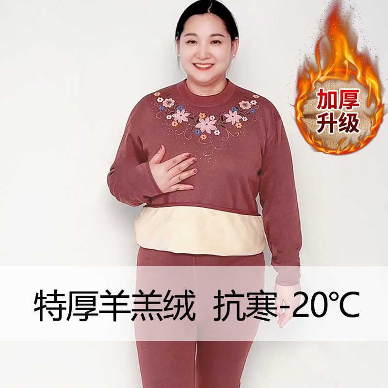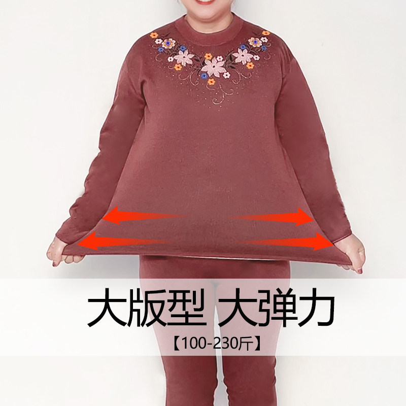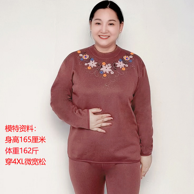 打底衫 中老年保暖内衣套装 女加绒加厚妈妈奶奶秋冬衣服加肥加大码