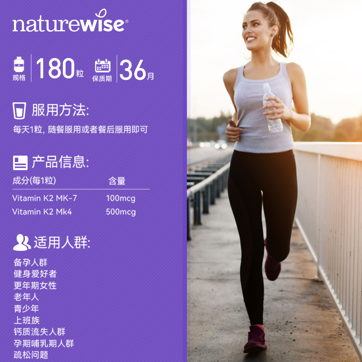 Naturewise维生素k2正品 官方k2mk4mk7维k维生素d3k2镁阳光瓶k2