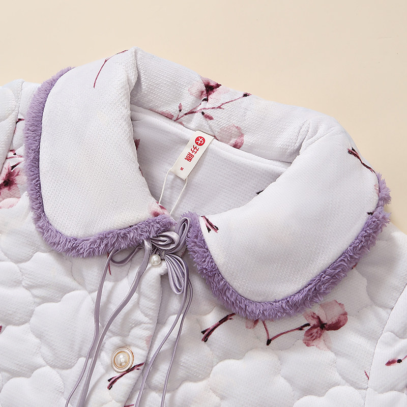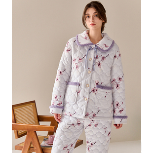 提花拉链刺绣小熊家居服外套装 珊瑚绒睡衣女冬季 保暖 双层加厚