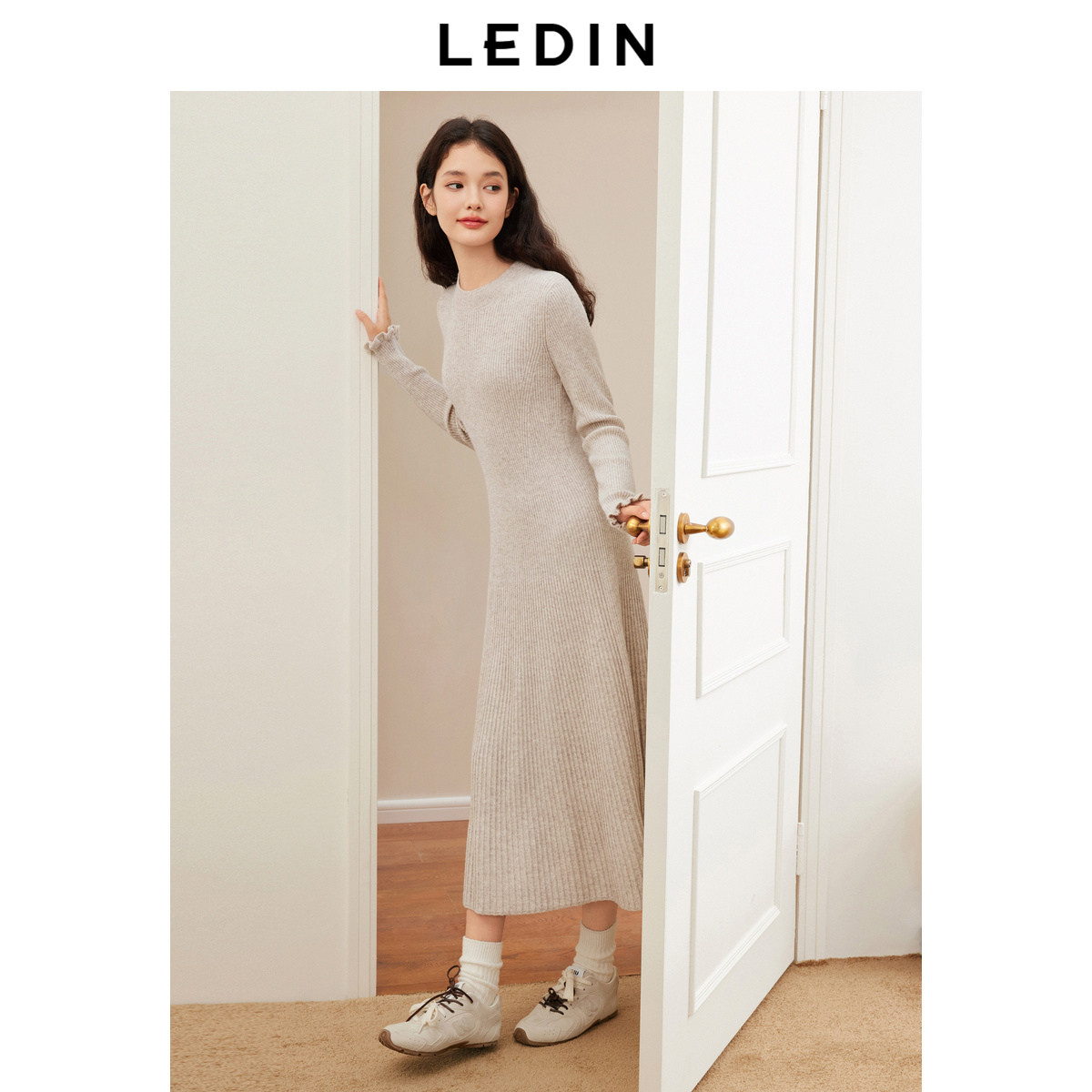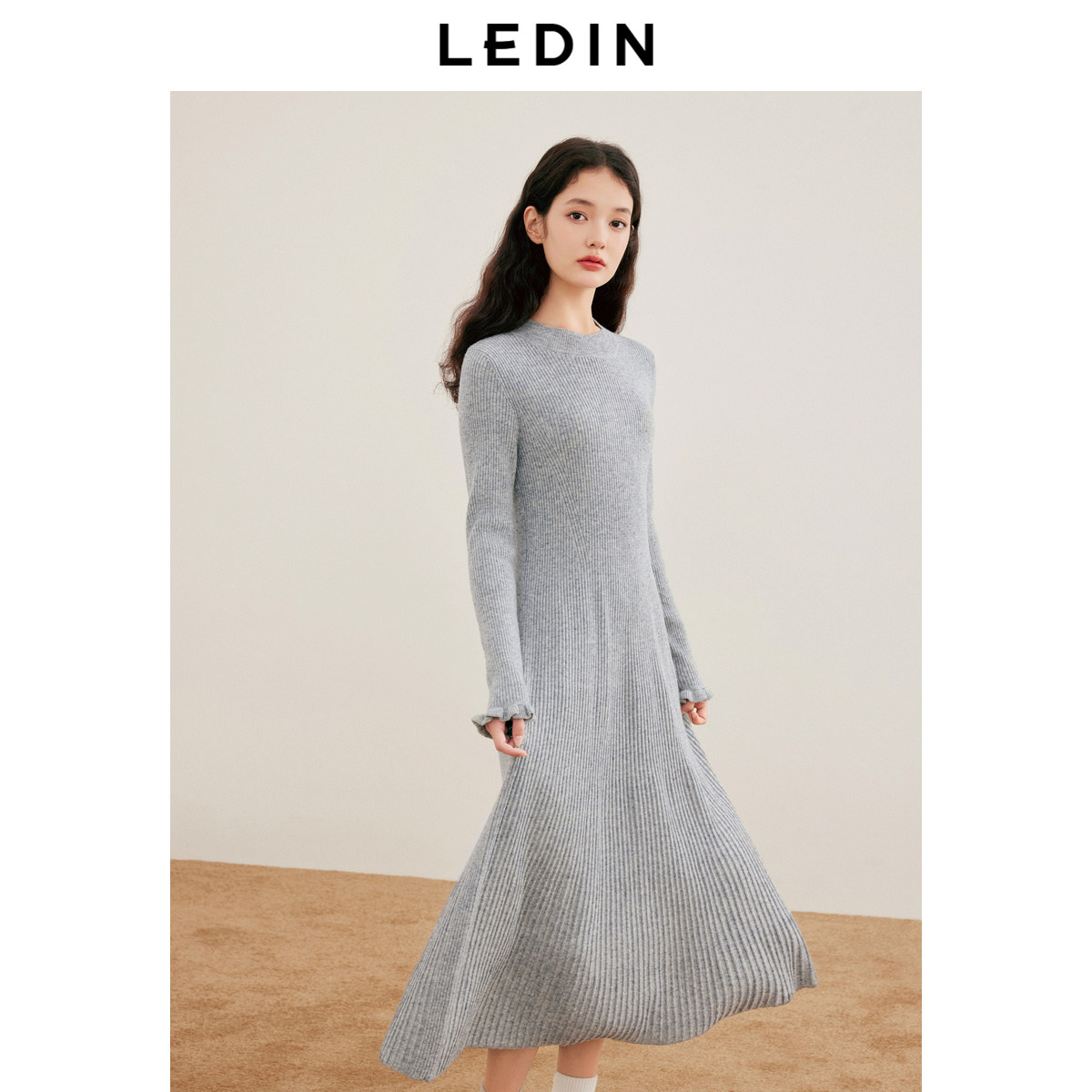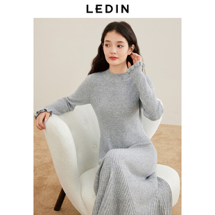 乐町半高领打底长裙冬季 显高显瘦收腰鱼尾设计基础连衣裙 新款