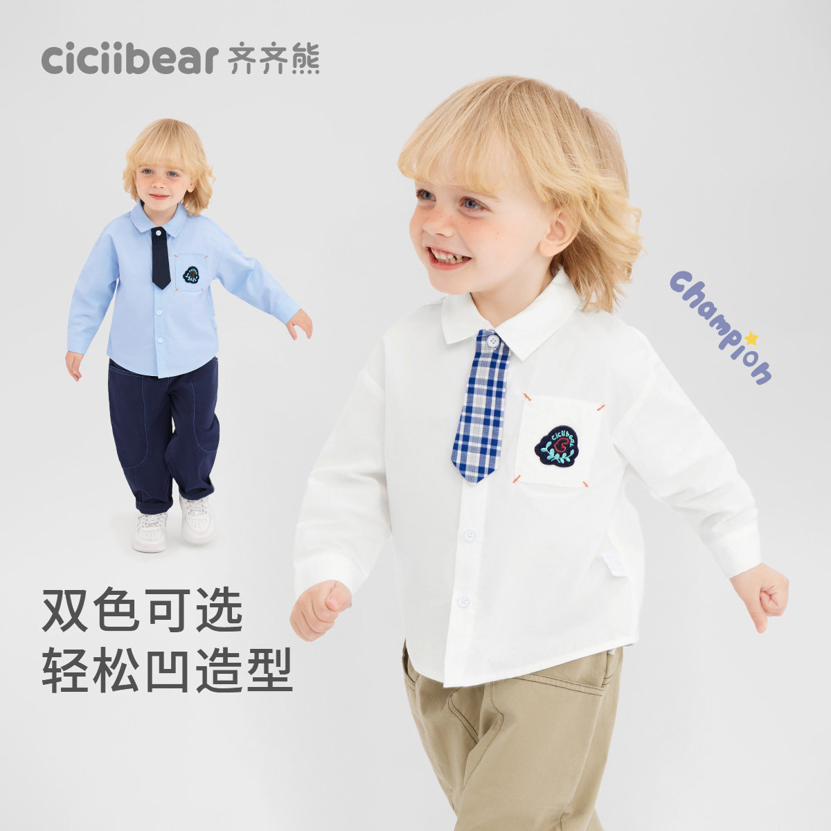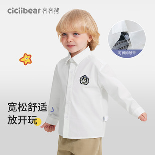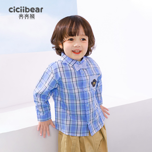 儿童格子衬衣宝宝幼儿园校服上衣春秋 齐齐熊男童白衬衫 学院风