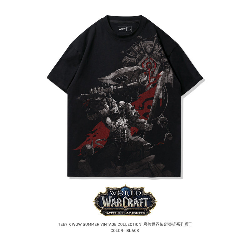 TEE7暴雪经典 魔兽世界WOW希尔瓦娜斯加尔鲁什拔染印花纯棉宽松T恤