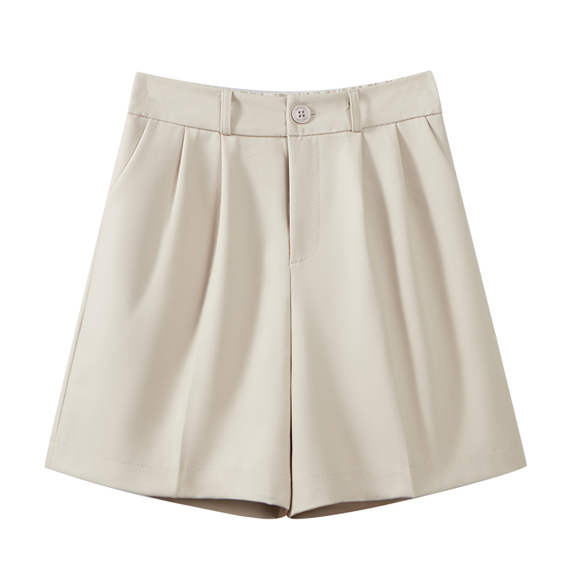 女夏西装 直筒港味阔腿五分裤 面料薄款 中裤 后松紧高腰休闲工装 短裤