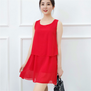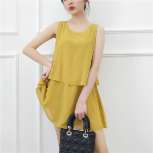 洋气大码 假俩件短裙韩版 宽松吊带打底裙 新款 雪纺背心女连衣裙夏季