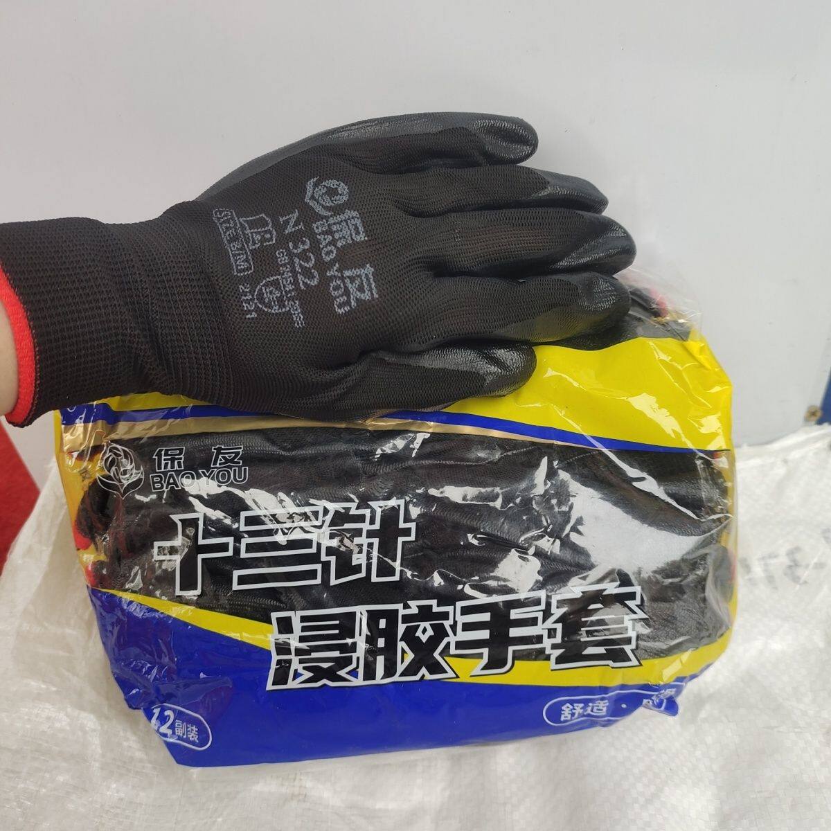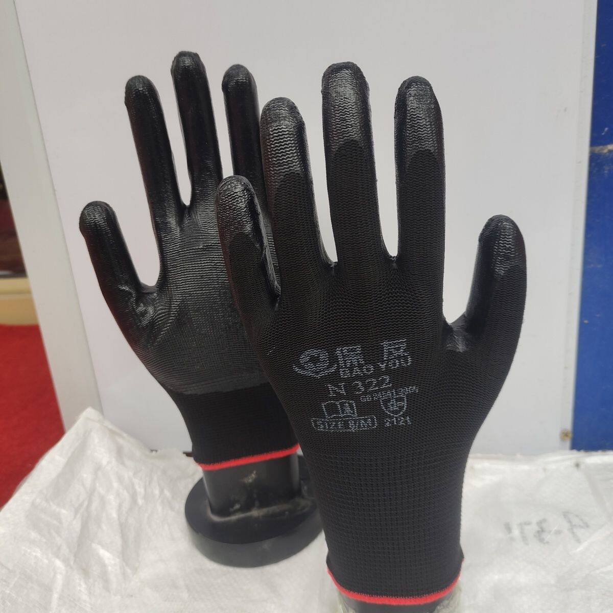手套 薄款 保友N322丁晴手套劳保耐磨防滑舒适透气黑色丁青男式 夏季
