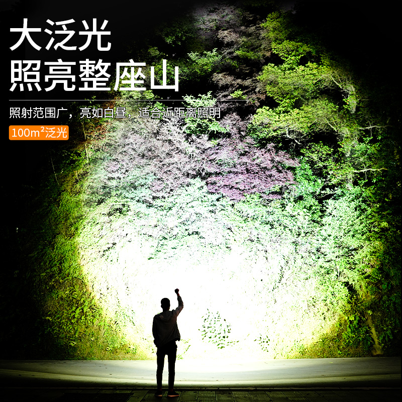 手电筒强光超亮充电户外远射26700锂电池长续航白激光变焦小手电