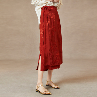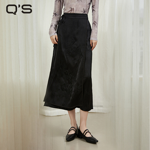 qs秸熙秋冬新款 半身裙 复古改良马面裙绣花搭片系带提花显瘦新中式