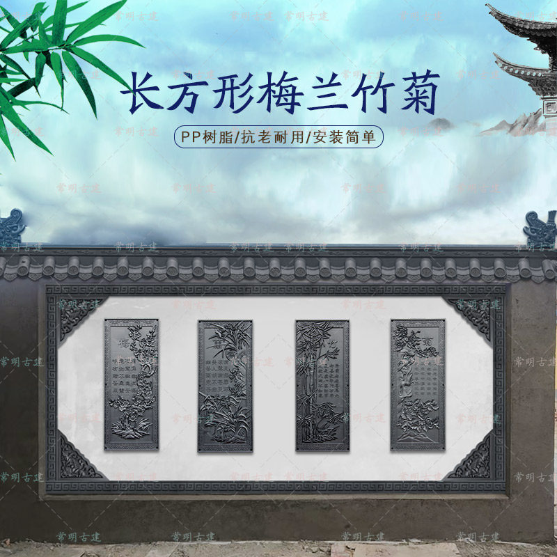 54x128梅兰竹菊农村庭院迎门墙面树脂挂件新中式 饰 墙壁塑料仿古装