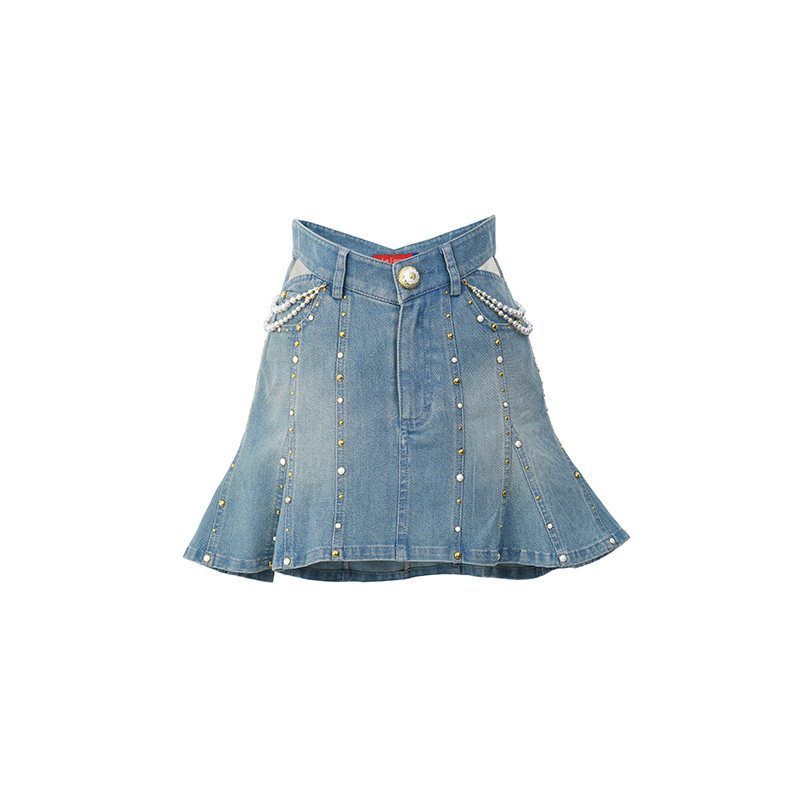 lefame拉飞姆华丽烫片鱼尾摆牛仔半裙半身裙女