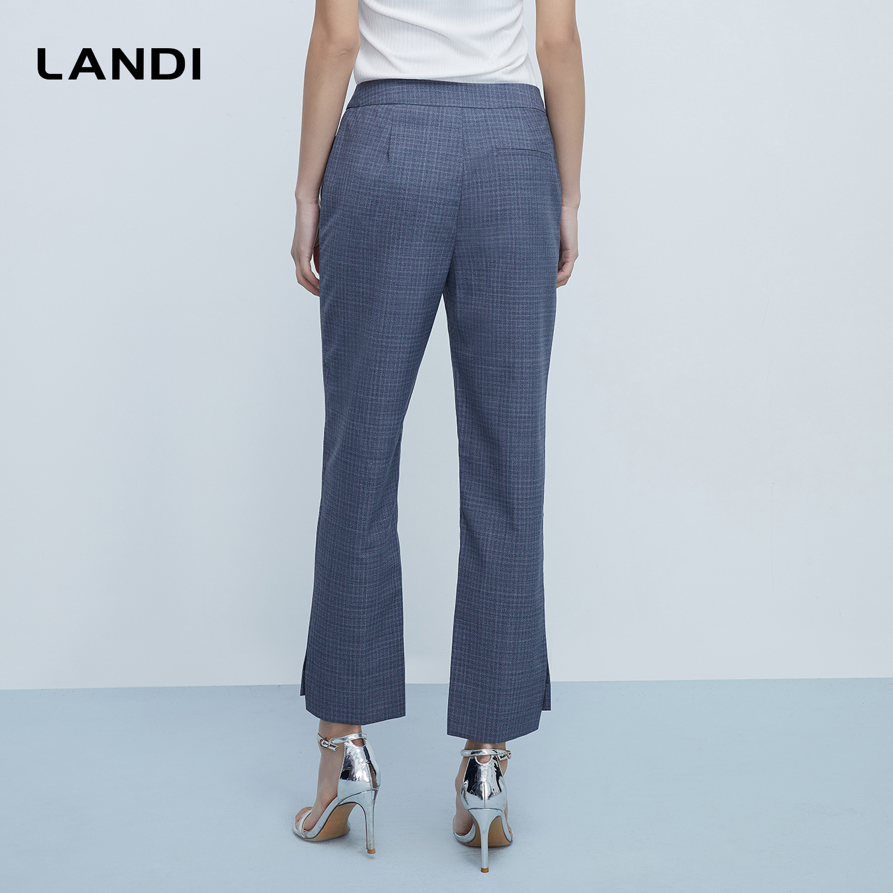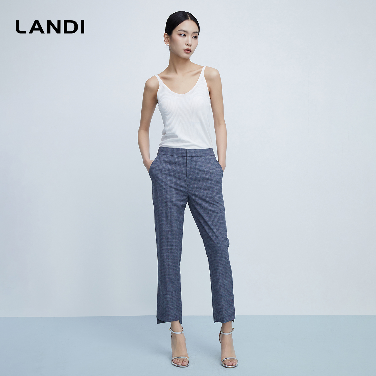 女春新品 裤 脚气质通勤显瘦西装 LANDI蓝地格纹蓝灰色不规则裤