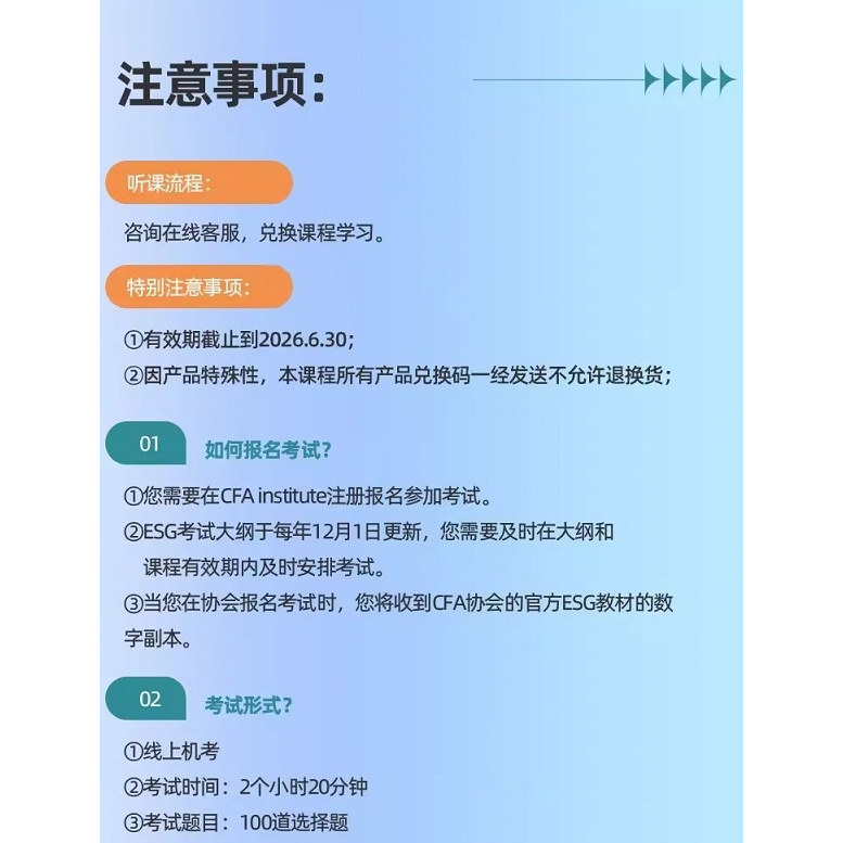 CFA 金融考试 ESG课程 课件讲义 资格认证培训 ESG网课 2026年新版