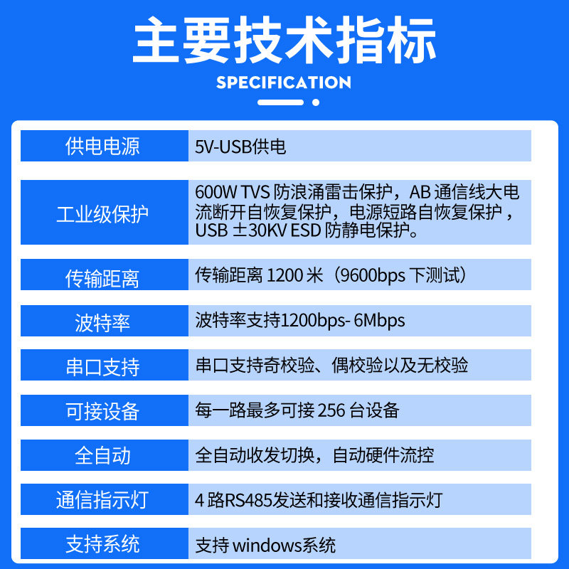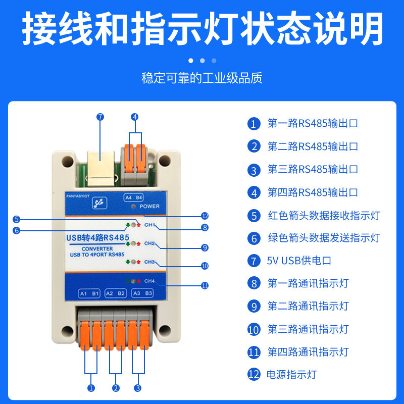 USB转4路rs485转换器4口rs485串口线串口通讯模块四个COM口工业级