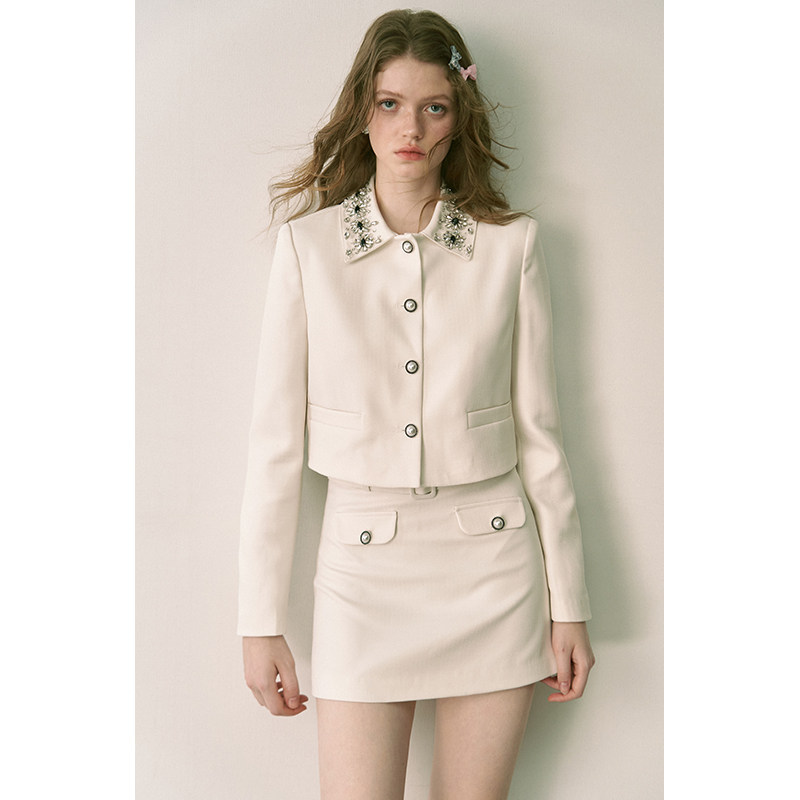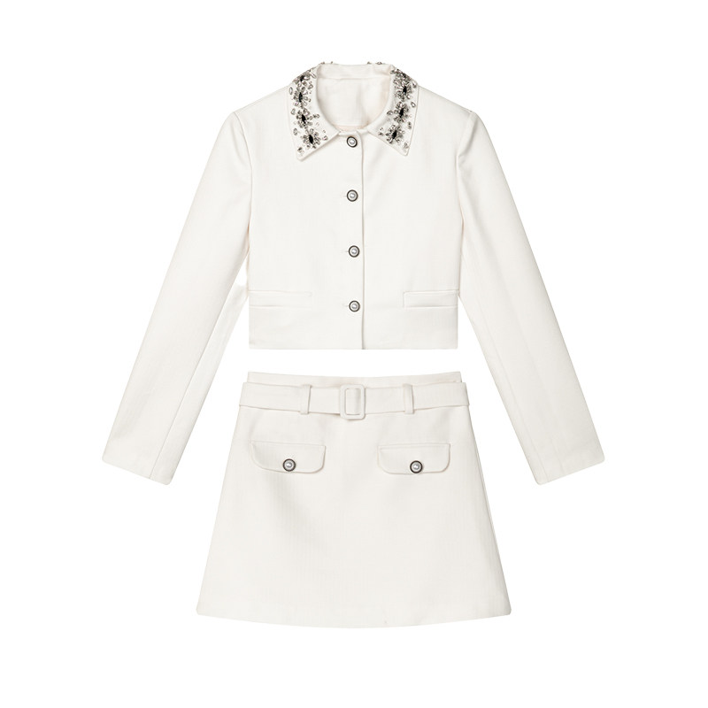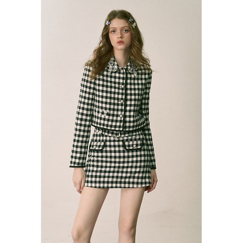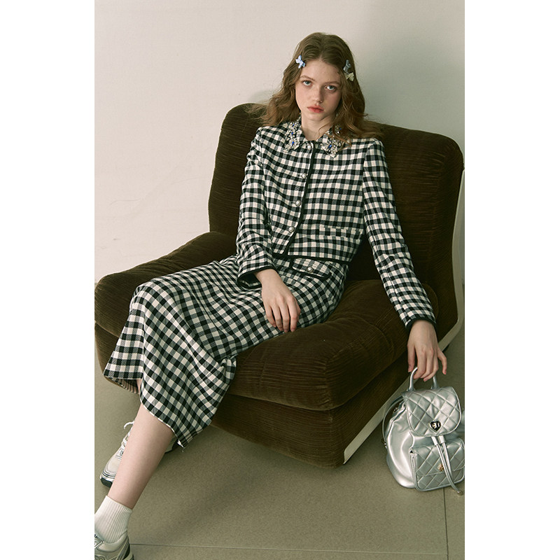 STUDIO 上衣小香风套装 限时清仓 黑白格水钻领修身 3折秒杀