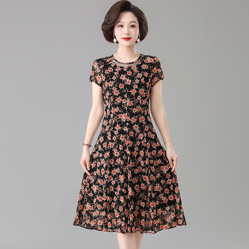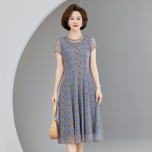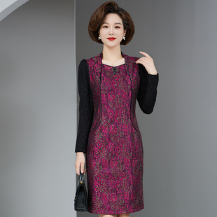 中年妈妈洋气连衣裙50到60岁高端气质遮肚名牌显瘦真丝裙子秋冬款