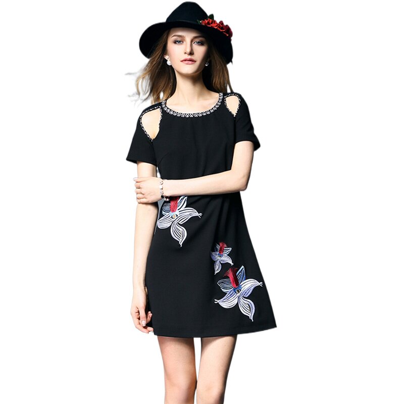 奈昕个性 露肩重钉珠刺绣花连衣裙 化私人定制70080欧美风简约时装