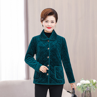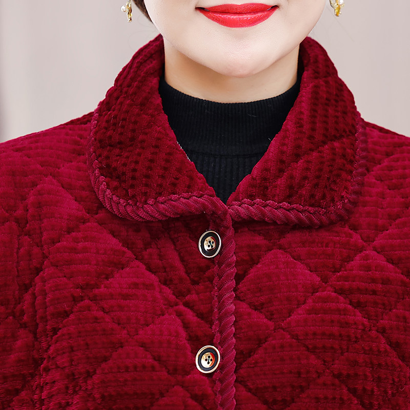 加绒加厚冬天外套棉衣条绒棉袄上衣 秋冬装 2024新款 中老年人妈妈装