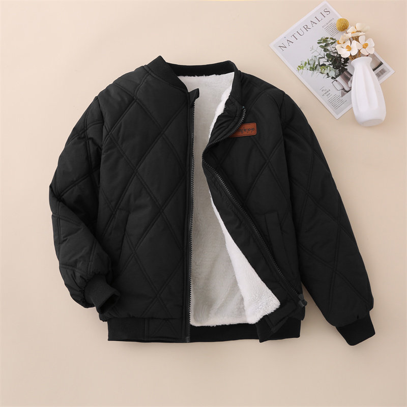 复古菱形格夹棉外套200斤 女装 胖mm冬季 巴恩翻领棉服木子理想大码