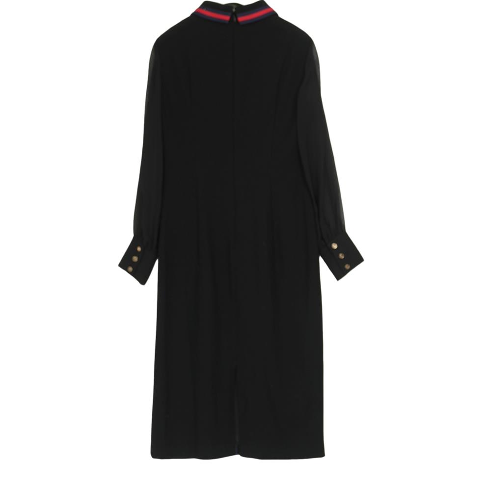 黑色圆领赫本风针织气质长袖 连衣裙女简约高智感小黑裙长裙子 修身