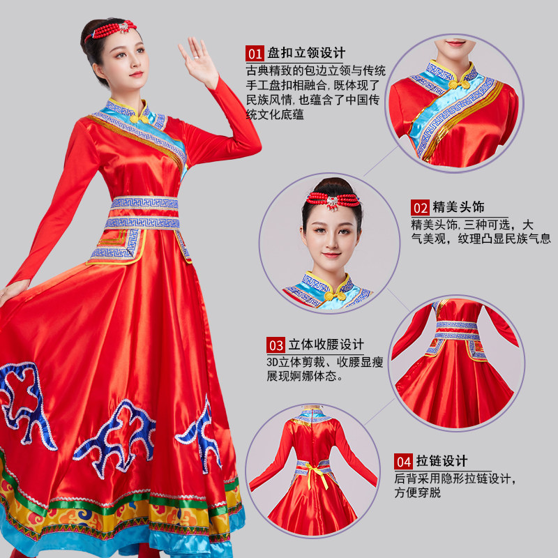 蒙古族舞蹈艺考服装 女民族舞蹈服练习裙蒙古舞男演出服成人服饰