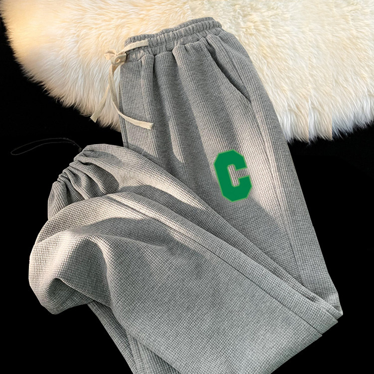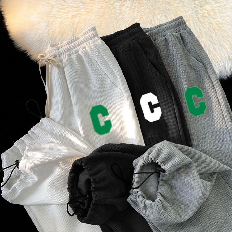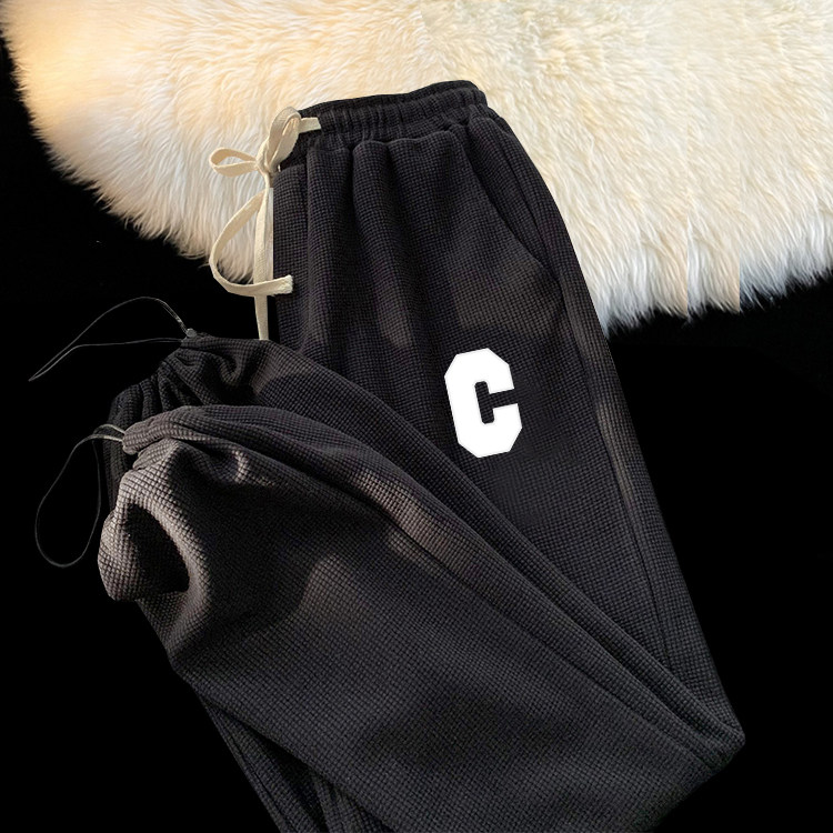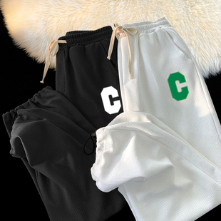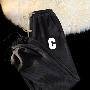 春秋束脚卫裤 男生裤 潮牌2023新款 大码 子 休闲直筒裤 灰色华夫格男款