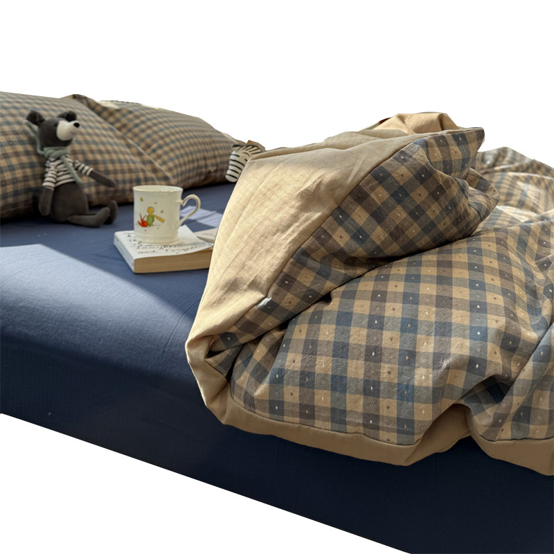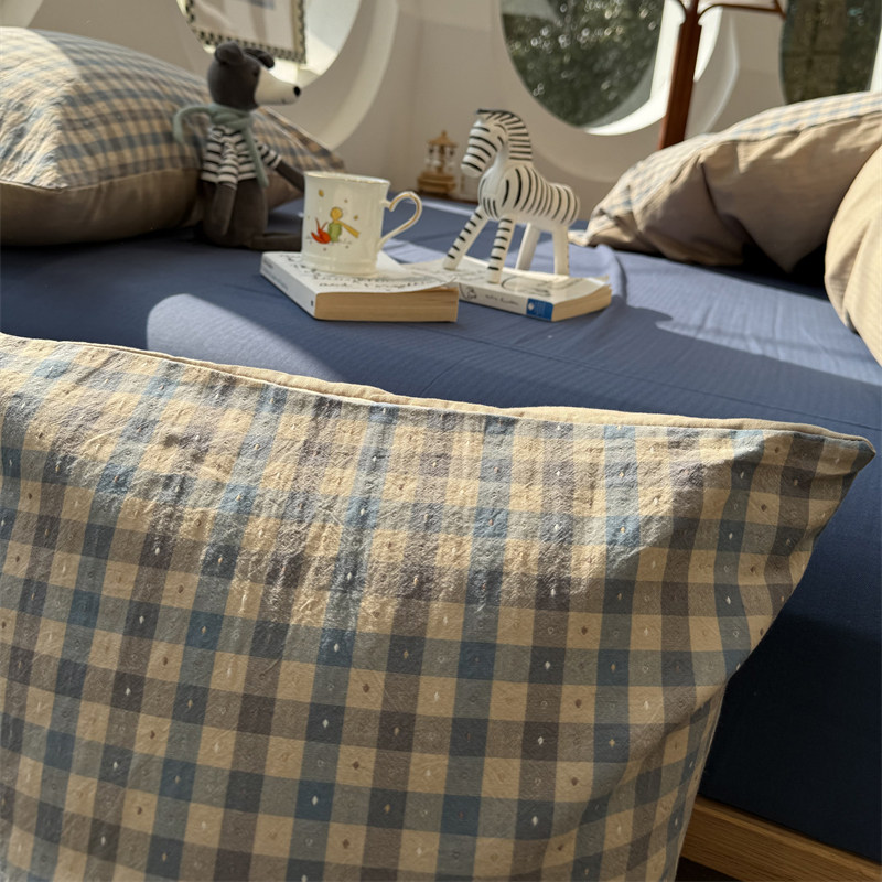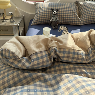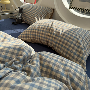 日式 水洗棉提花卡布奇诺蓝床上四件套全棉1.5m1.8公寓被套三件套