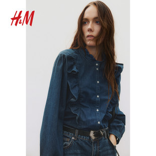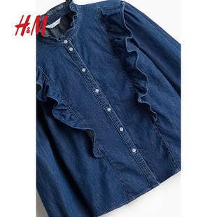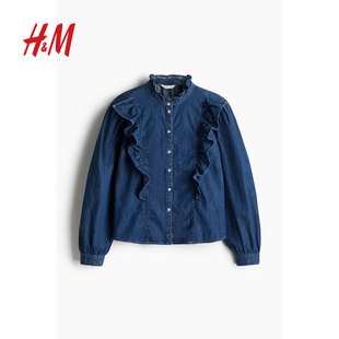 衬衫 休闲褶边宽松版 2025冬季 时尚 柔软棉质上衣1262585 新款 HM女装