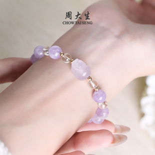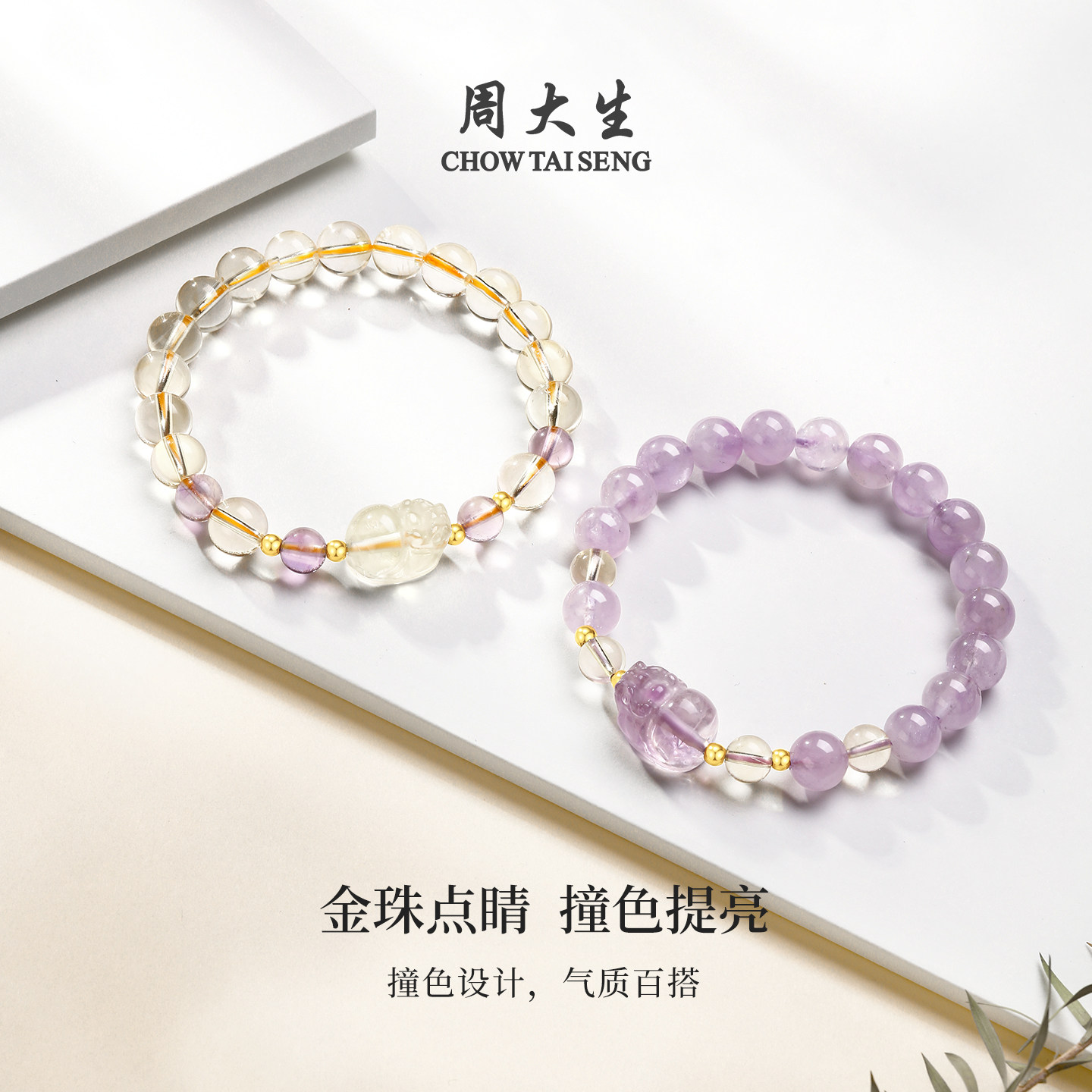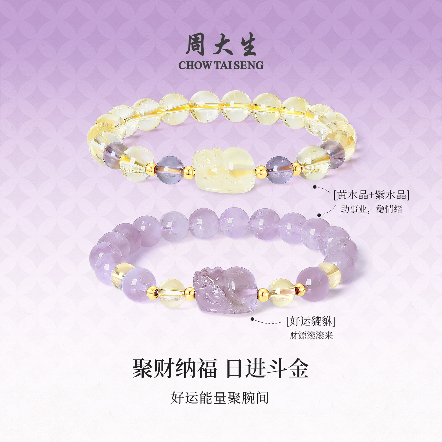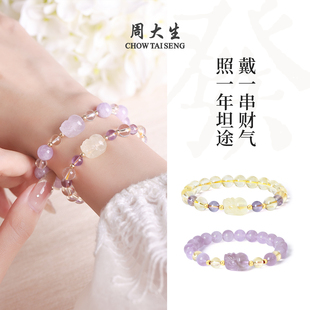 周大生18K黄金紫水晶手链黄水晶手串女貔貅送女友新年礼物送闺蜜