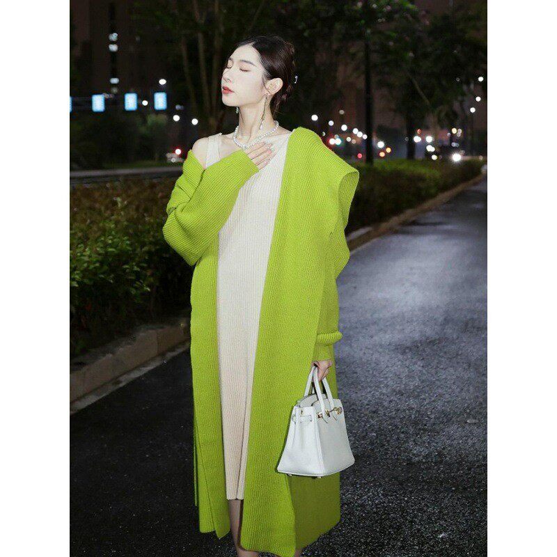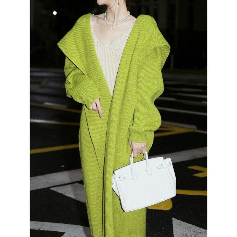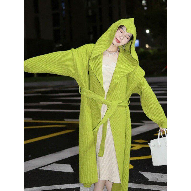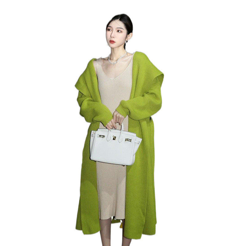 2024高级感超好看牛油果绿针织开衫 斗篷厚毛衣外套女秋冬 长款